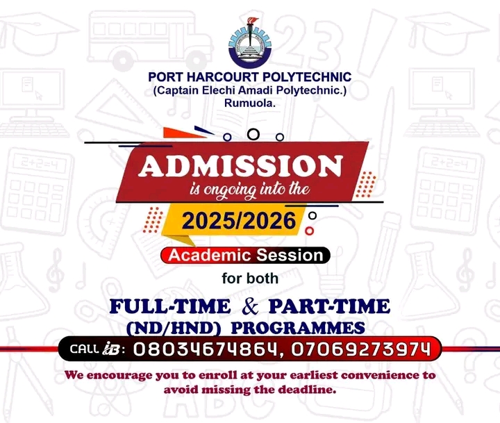 Applications are invited from suitably qualified candidates for admission into the Full time/Part-time Higher National Diploma (HND) and National Diploma Part-time Programmes of Captain Elechi Amadi Polytechnic for the 2025/2026 Academic Session.