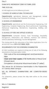 All HND Candidates are required to bring two (3) sets of the following documents to the Examination Centre.
