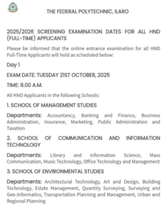 The Venue for all Entrance Examination is the Polytechnic ICT Centre, West Campus