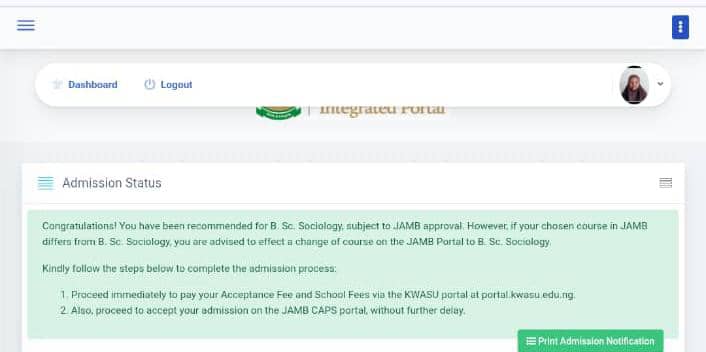 All applicants who participated in the KWASU admission process can now proceed to check their admission status via the university’s official school portal. Successful candidates are advised to accept their admission offer promptly and proceed with the next steps.