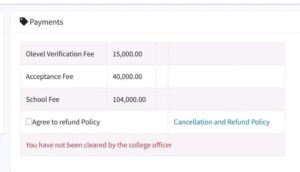 Before proceeding to payment, students are *required to complete their admission clearance and documentation.This is a mandatory step to gain access to the school fees portal.