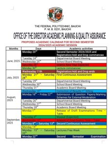 The Directorate of Academic Planning has released the Academic Calendar to guide you throughout the semester. The calendar outlines important dates, deadlines, and activities that will help you plan and manage your time effectively.