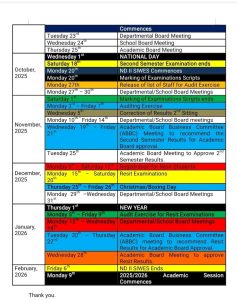 We wish you all the best as you resume for the second semester. May this semester be filled with academic success, personal growth, and memorable experiences. We are committed to providing a supportive learning environment that will enable you to achieve your academic goals.