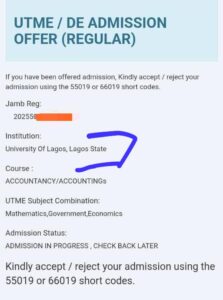 ▪ Send ACCEPT or REJECT as an SMS to 55019 or 66019 using the phone number linked to your JAMB profile